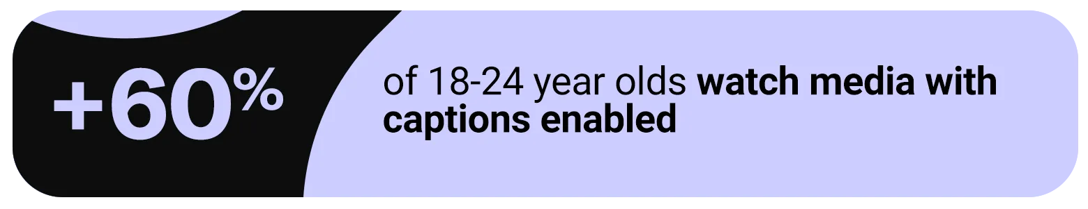 Among younger audiences, subtitles are now routine. Research shows that 61% of 18–24-year-olds regularly watch with captions enabled to follow dialogue more easily, watch in sound-off environments, or engage as non-native speakers.