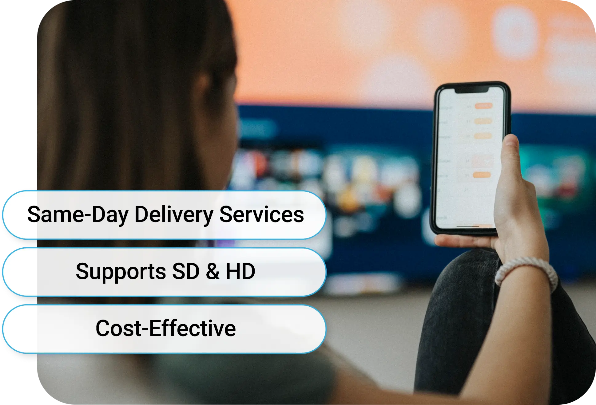 Low cost, same-day delivery services, including closed captioning, encoding, and content tagging.